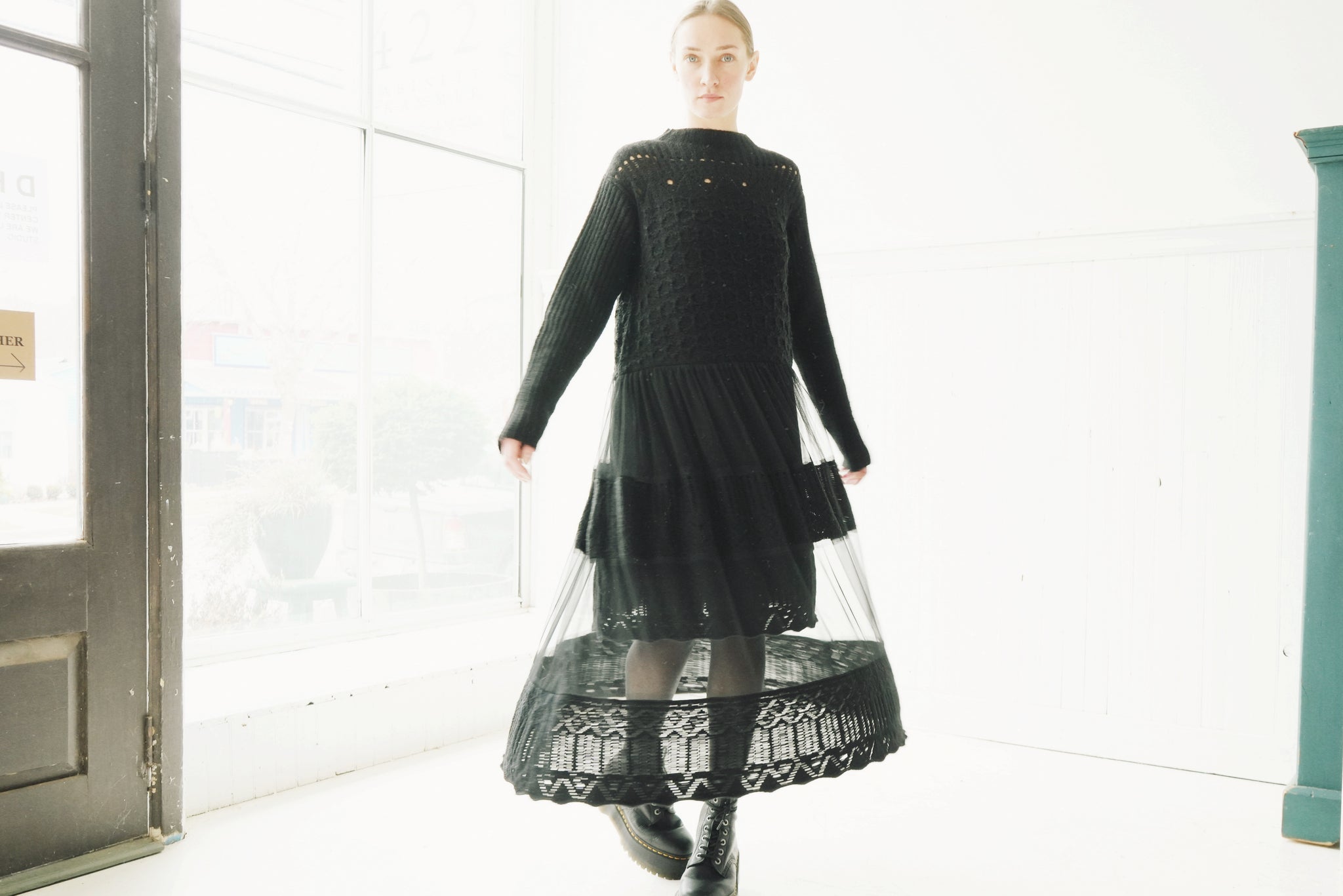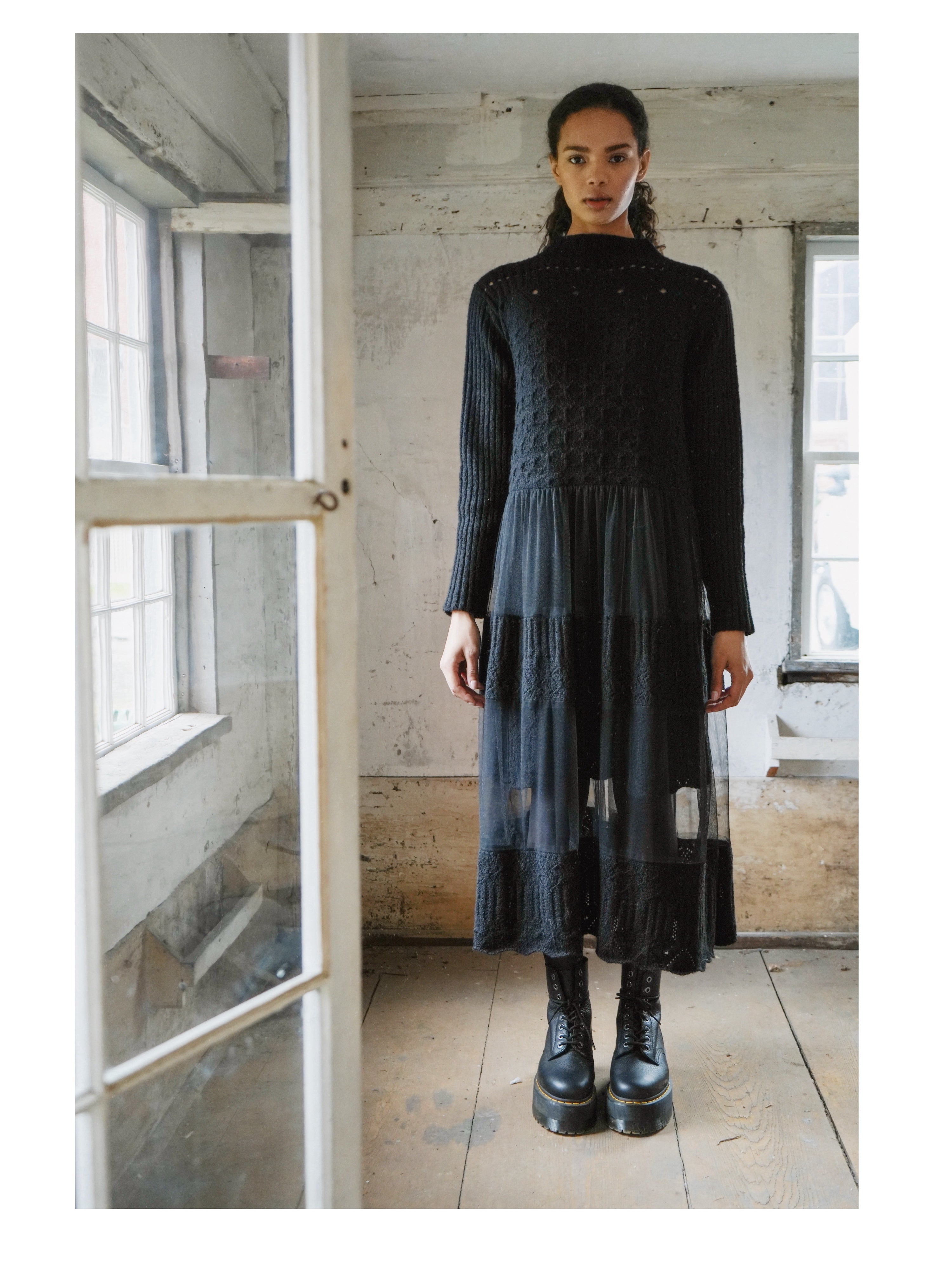alpaca and cotton knit dress with nylon tulle skirt in black