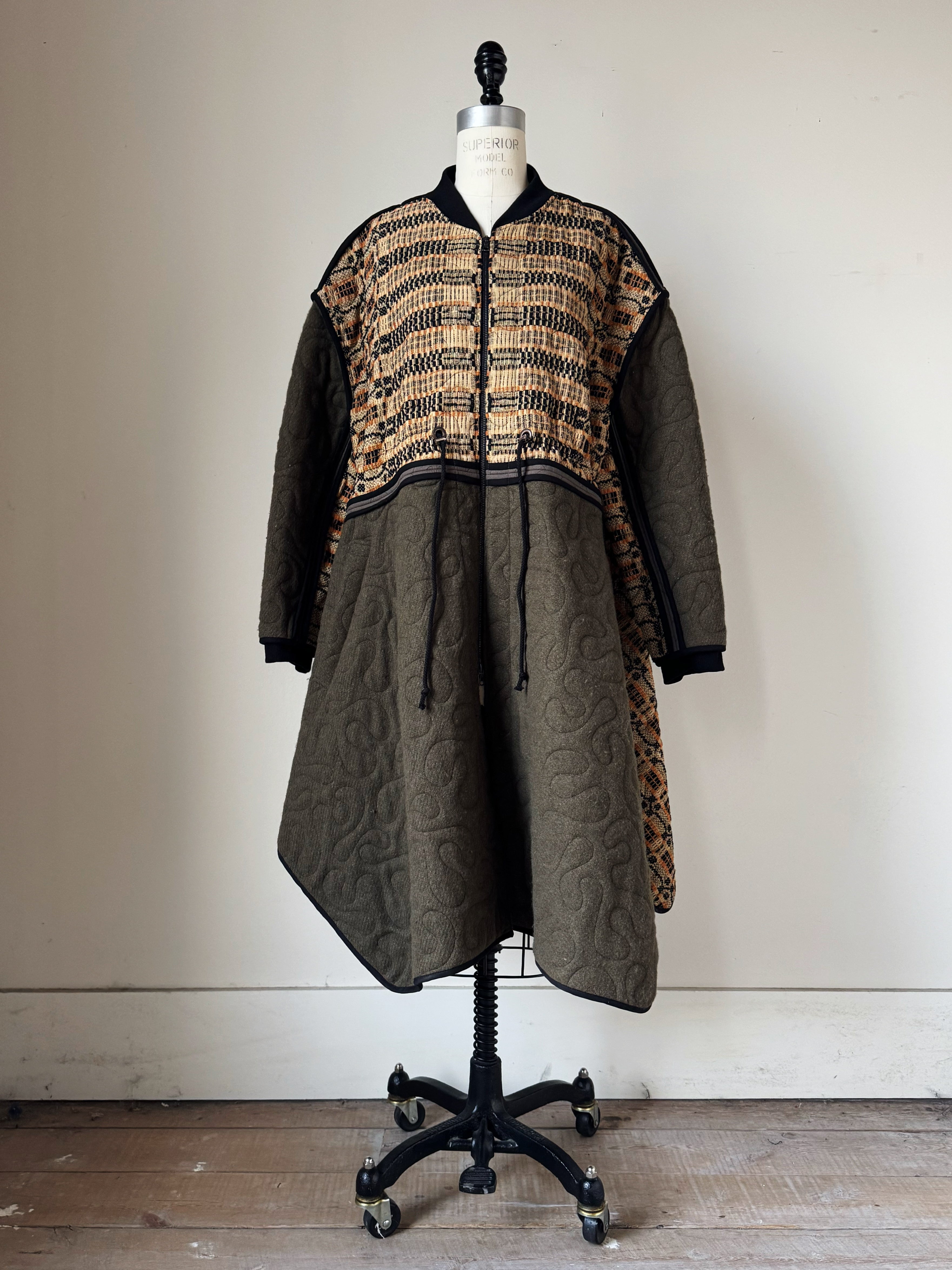 windbreaker style quilted antique overshot and vintage army wool blanket with 100% organic cotton batting