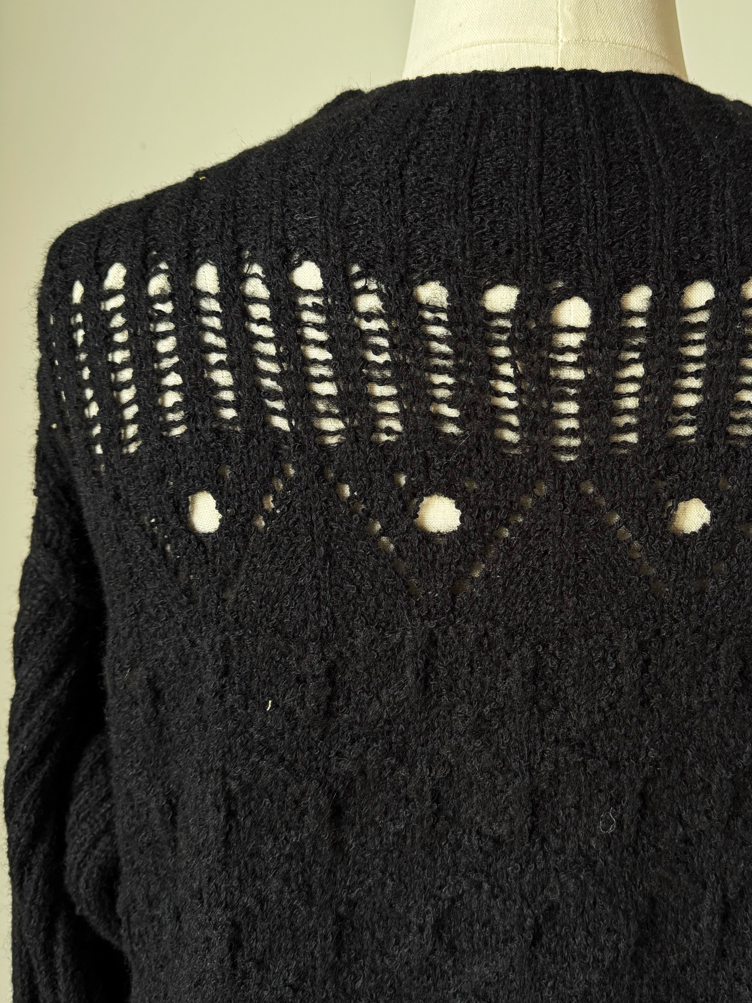 very soft knit jacquard style with eyelet and machine knit lace grafted onto nylon tulle