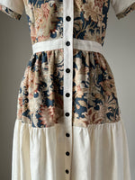 19th century jacobian floral patched tiered dress xs,s,m,l