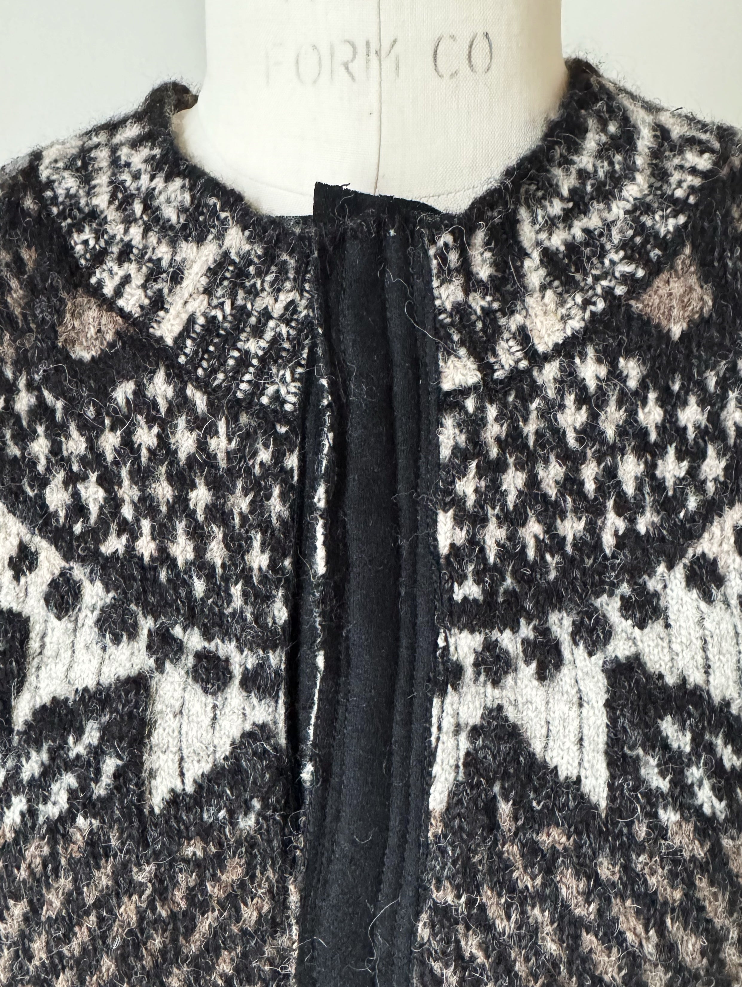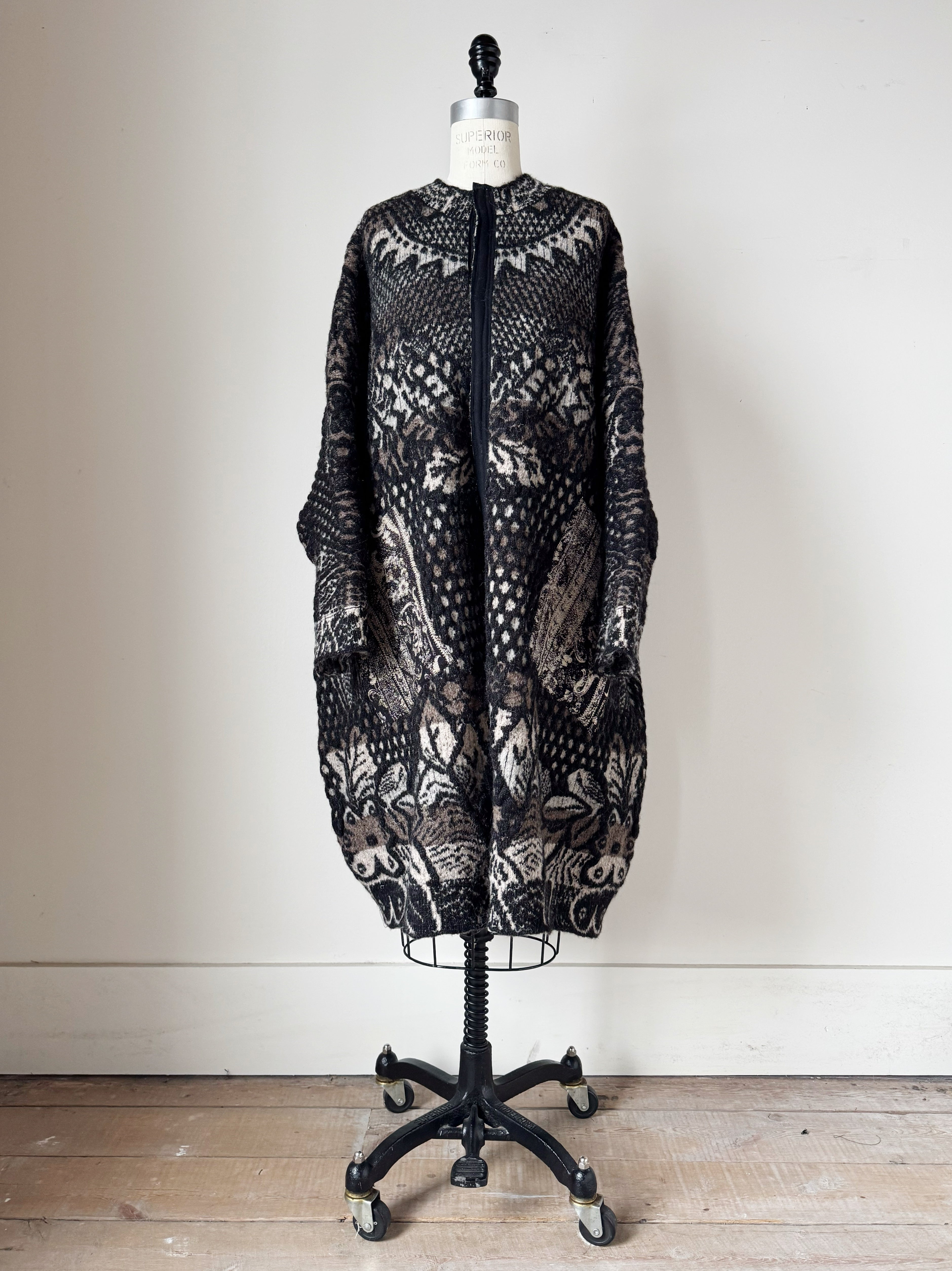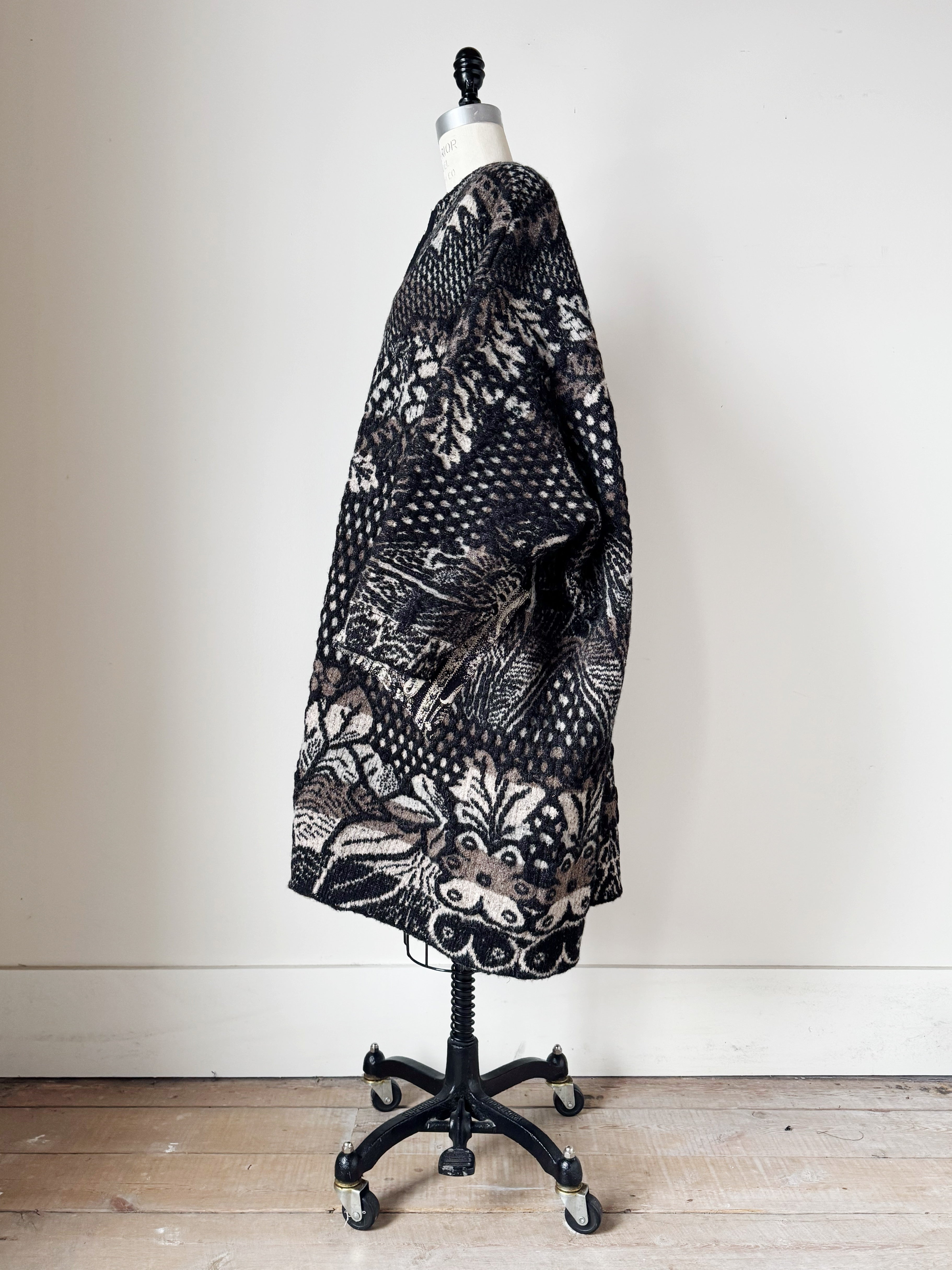 alpaca blend jacquard coverlet tunic. motif design translated from antique coverlet