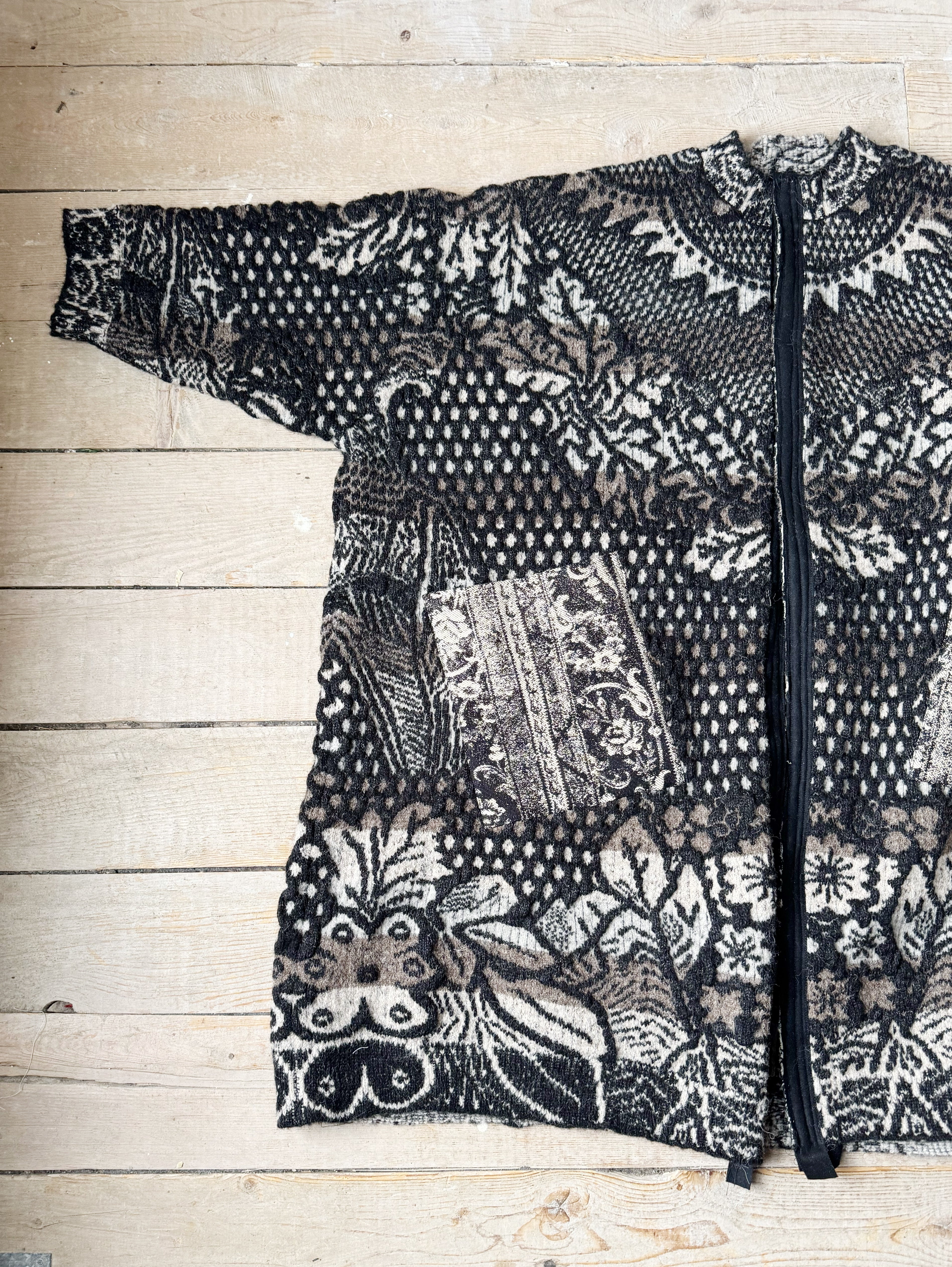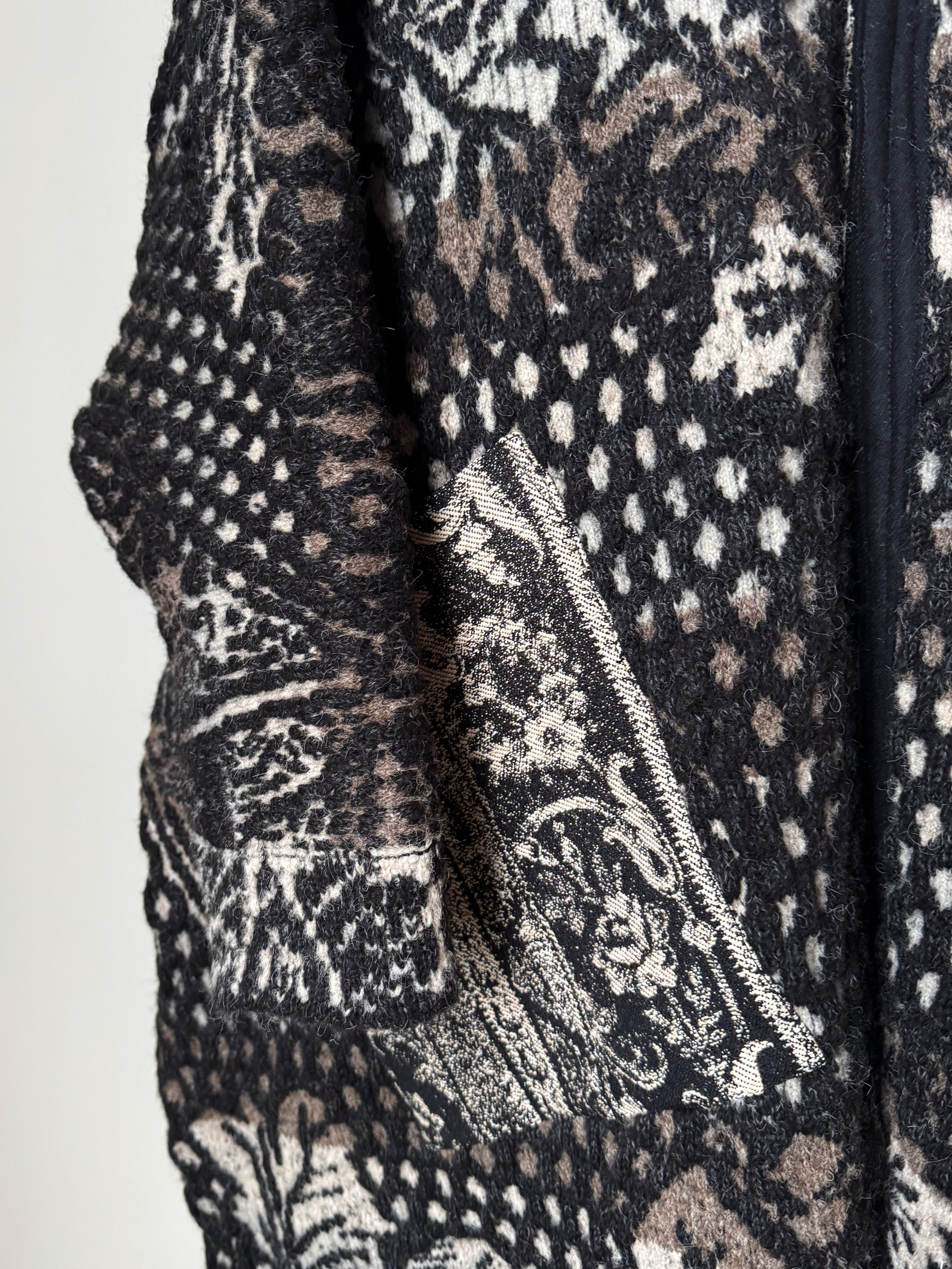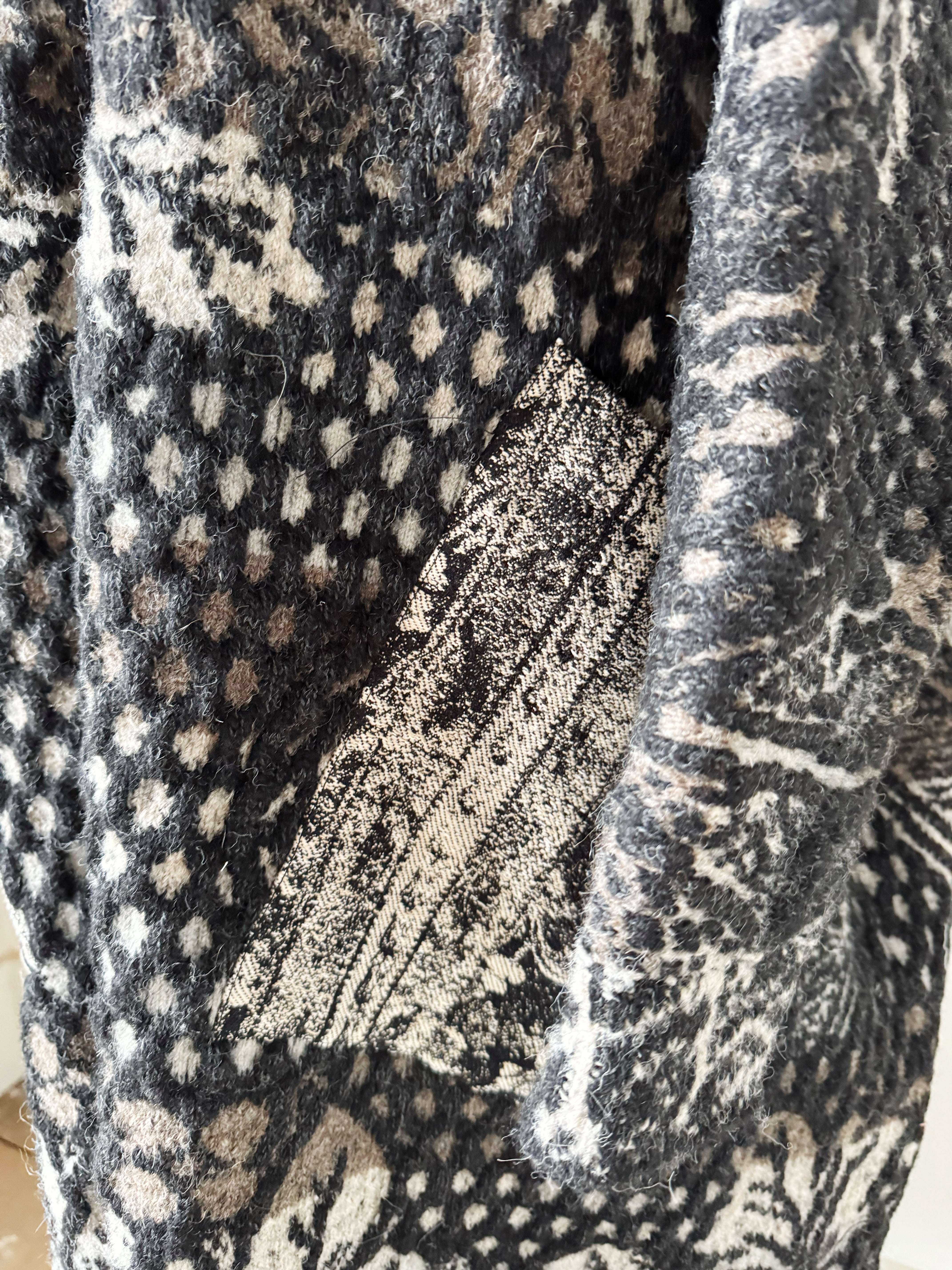 alpaca blend jacquard coverlet tunic. motif design translated from antique coverlet