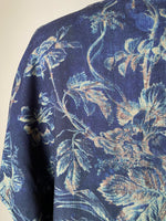 reinterpreted 19th century floral toile in a reversed negative and indigo colorway