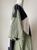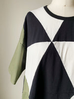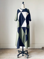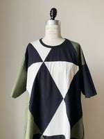 100% cotton twill and organic cotton jersey triangles hand cut and engineered together into the classic oversized tee shirt dress