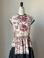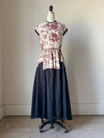 antique 19th century floral with stitching detail and 100% washed linen skirt