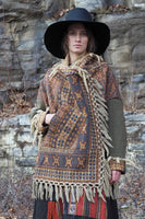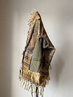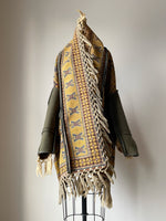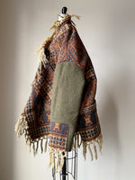 antique victorian jacquard with vintage army blanket patched sleeve