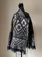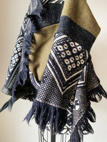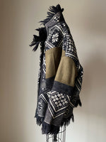 black wool with cotton ground antique coverlet combined with army blanket and GG archive jacquard