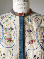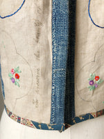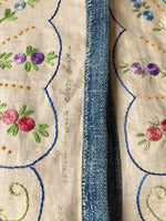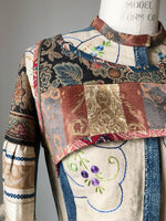 vintage butterfly embroidery sample patched with African Inigo cloths and various other cabinet remnants