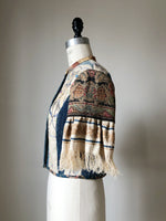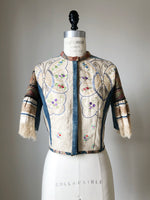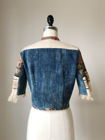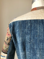 patched butterfly embroidery and African indigo cloth shirt jacket