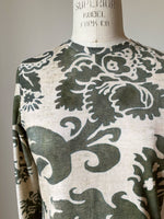print design inspired by the underside of an antique fortuny repaired textile remnant