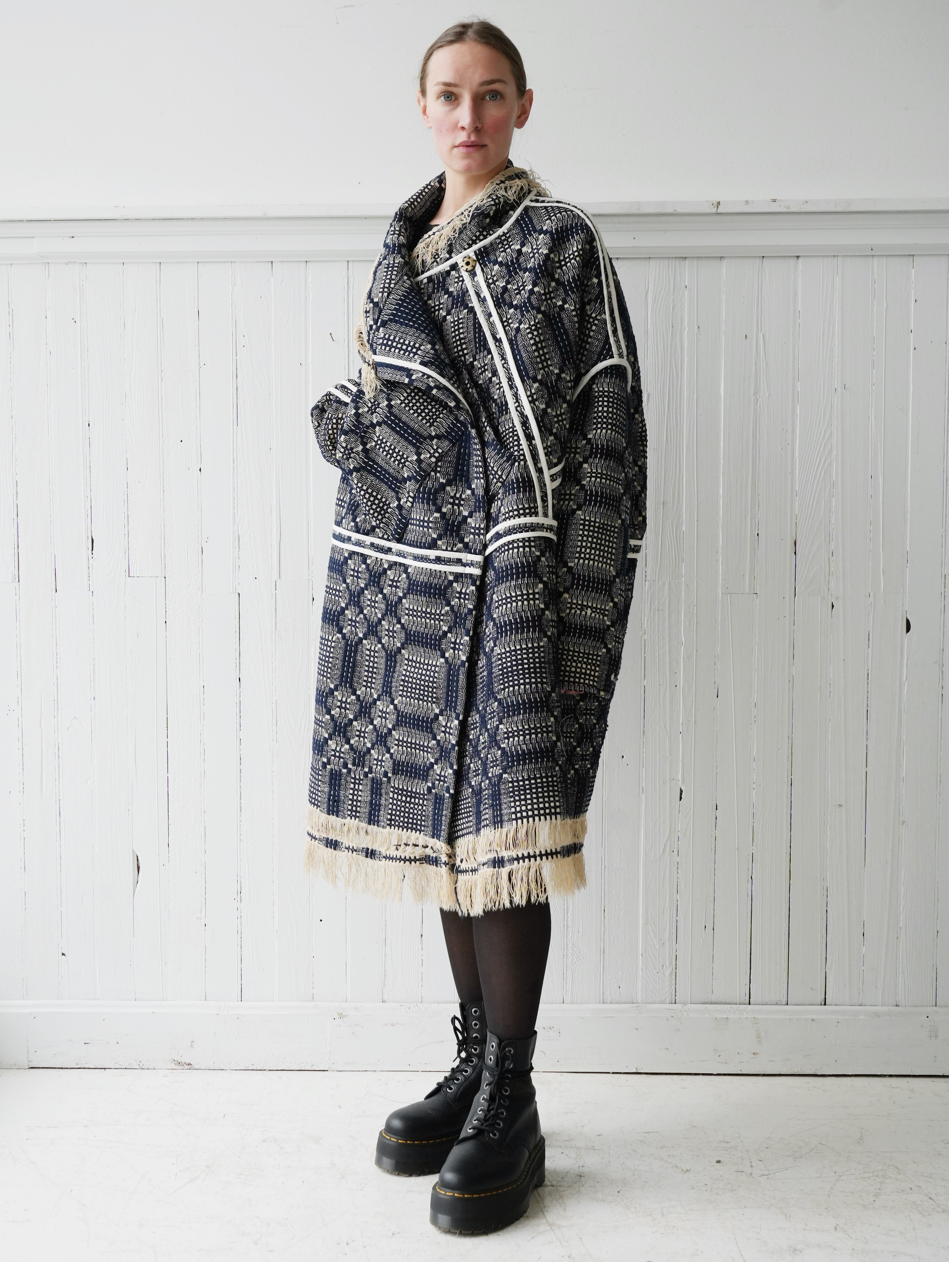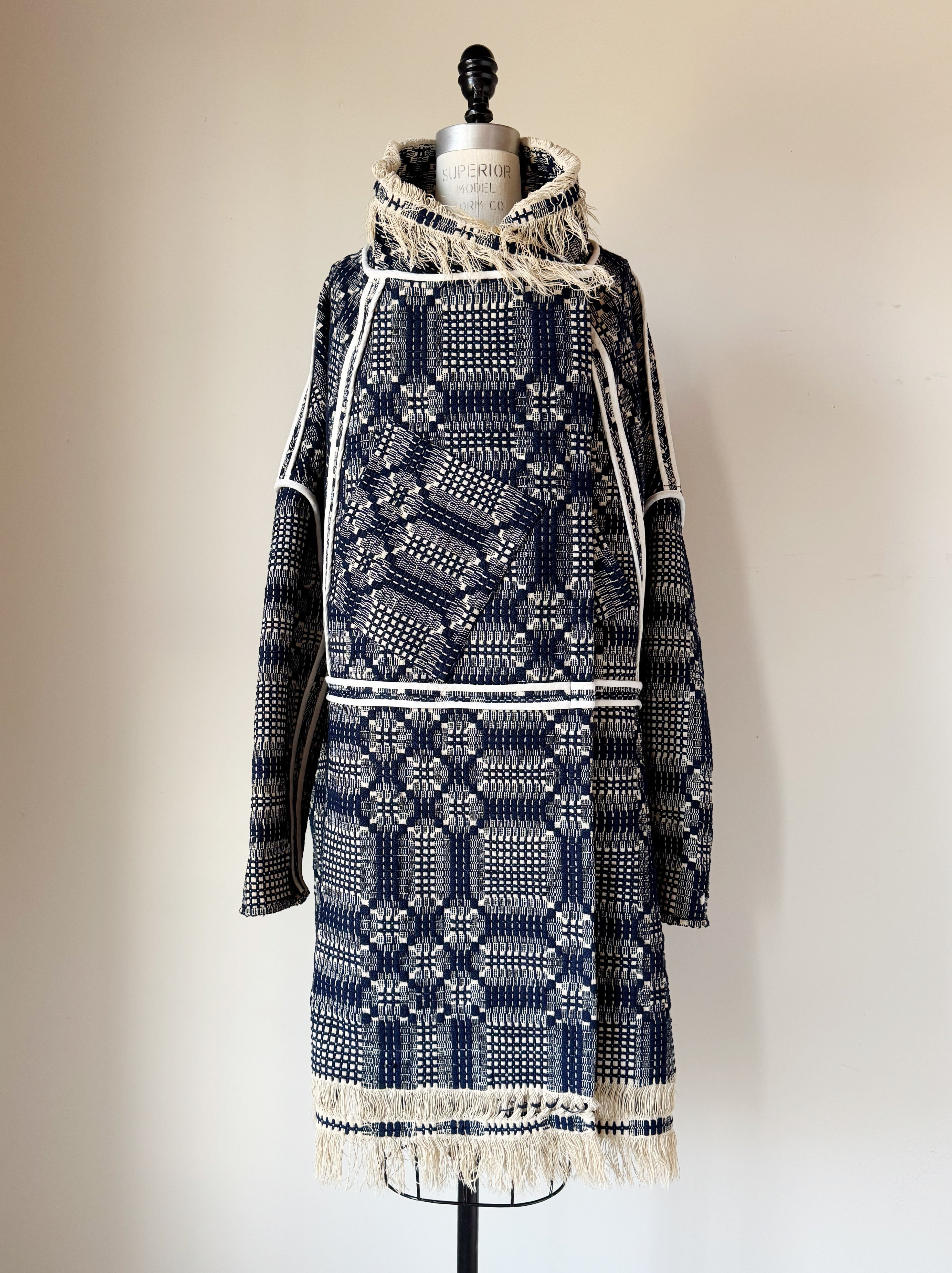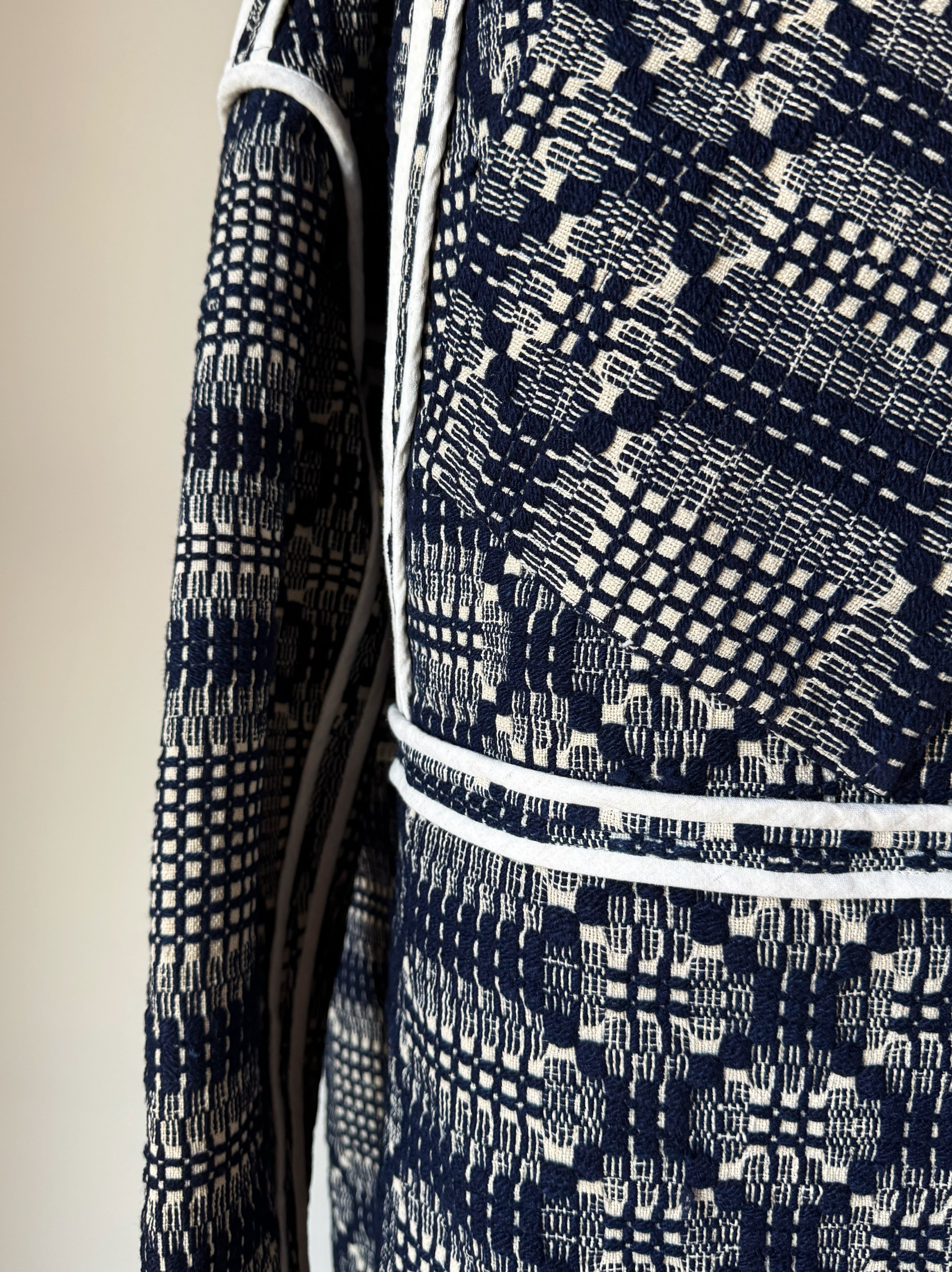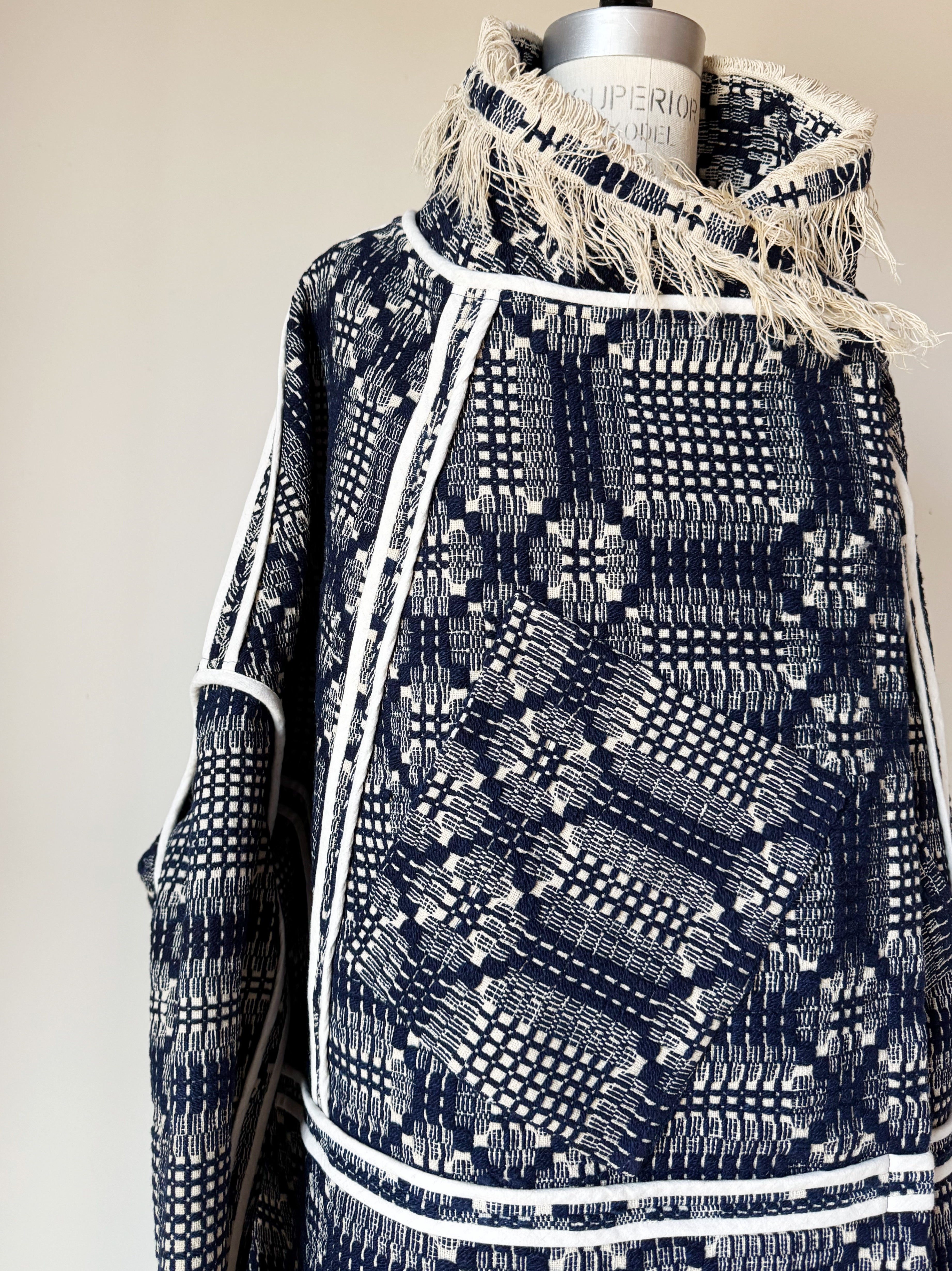 wool and cotton antique overshot coverlet cocoon coat/jacket