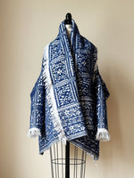 blue and white dutch floral coverlet cocoon coat and jacket combo