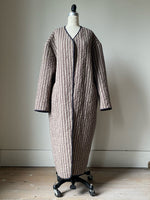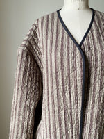 cotton/linen ticking, 100% cotton batting and archival silk jacquard