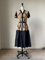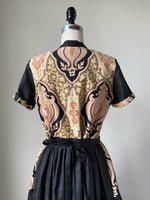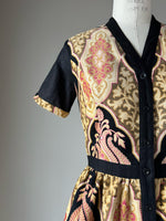 19th century medallion print patched tiered dress s,m,l
