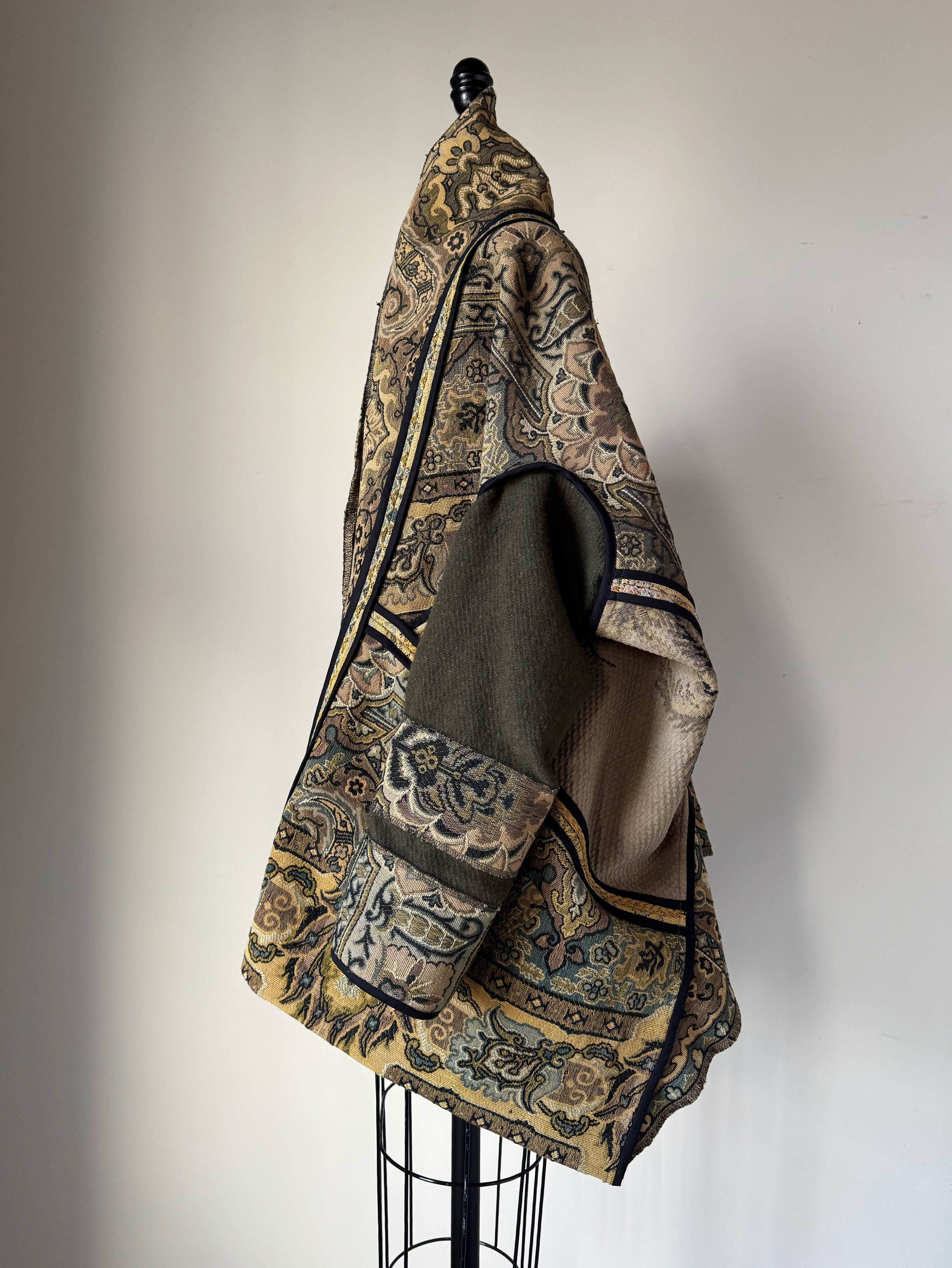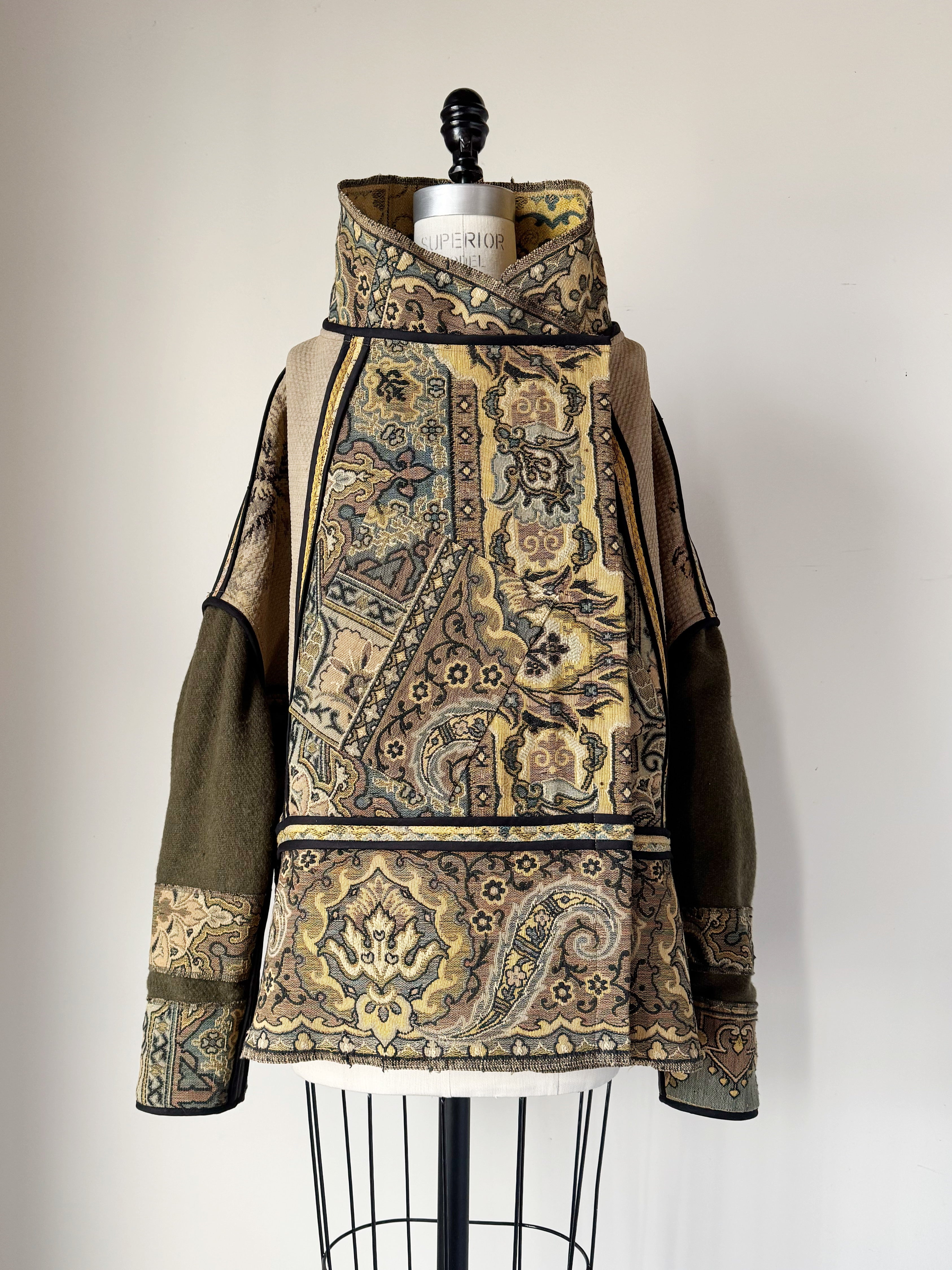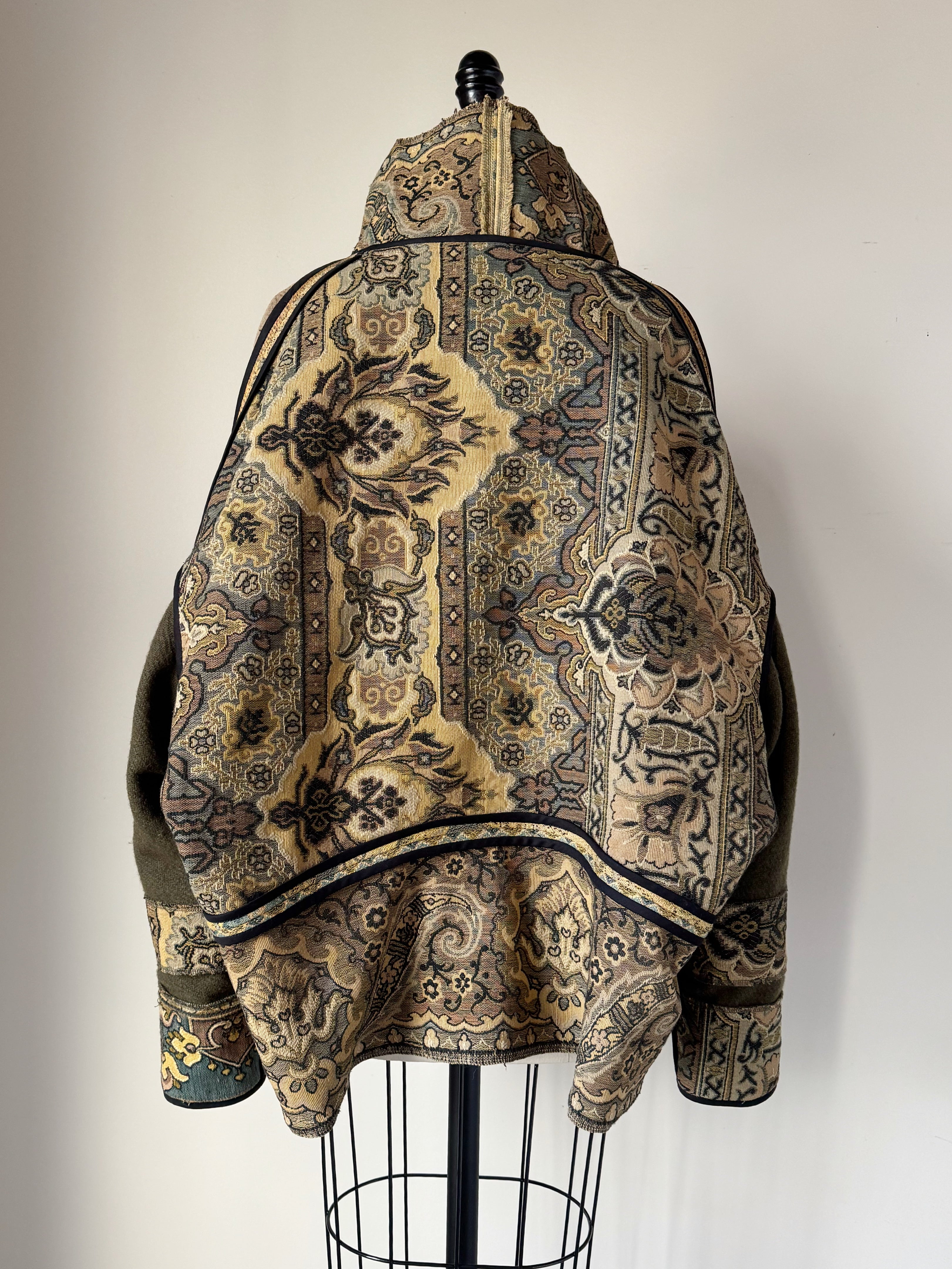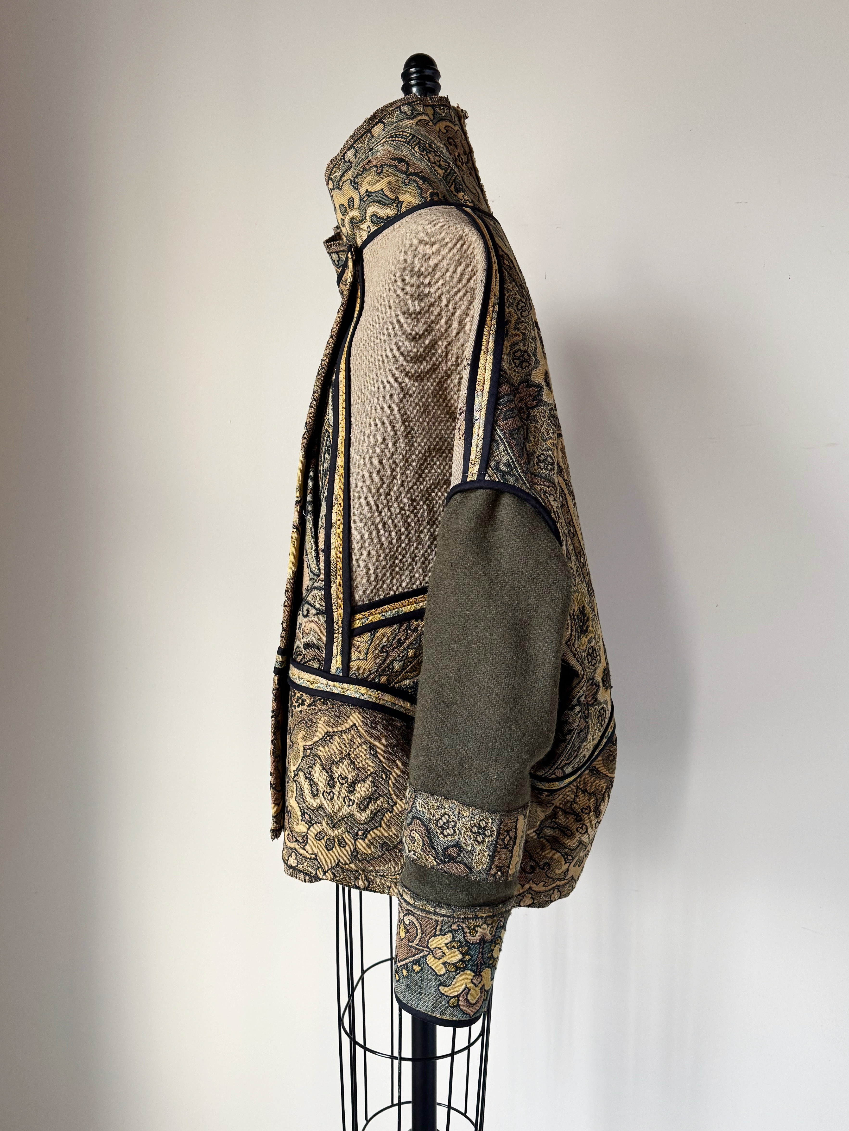 1880's french jacquard in 100% cotton, vintage wool army blaket, 100% cotton taoestry and 100% cotton stripe sleeve lining