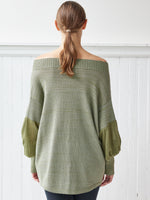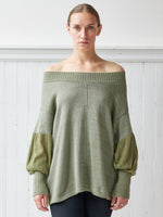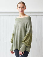 sage knit peasant top in 50% tangius cotton ,50% viscose
