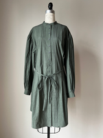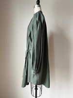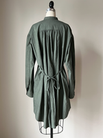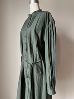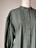 army green pin tuck peasant shirt dress