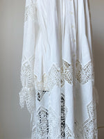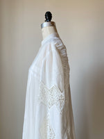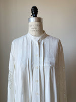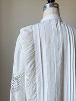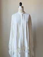 100% cotton voile and lace shirt dress with silk chiffon ruching detail